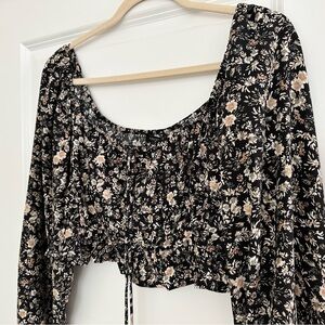 Floral Cropped Peasant Top With Smocked Detail & Balloon Sleeves -Boho Cottage Core