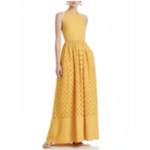 NWT A.L.C Blair eyelet Halter Mustard Yellow Maxi Coquette statement dress Sz-14