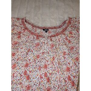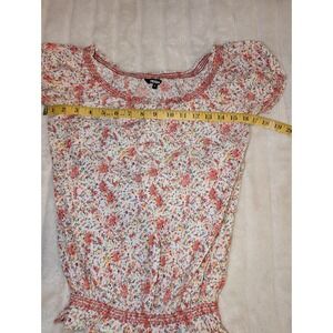 Nuon Women's Cotton Smocked Floral Short Sleeve Elastic Waist Blouse Small