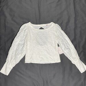 Free People Top Women M Ivory Long Sleeve Lace Lined Cut Out Back Boho Blouse