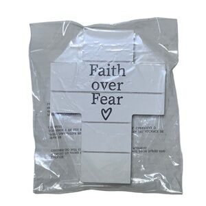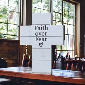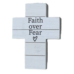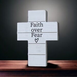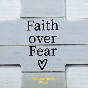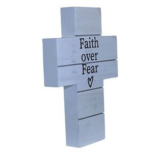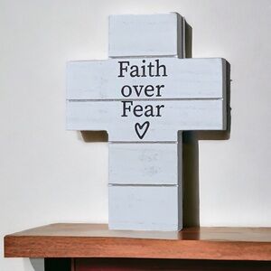 Faith Over Fear Phrase Classic and Timeless Cross Religious and Inspirational Decor that can be hung or use as a freestanding piece on tables desk shelf bookcases Night Stand Table
