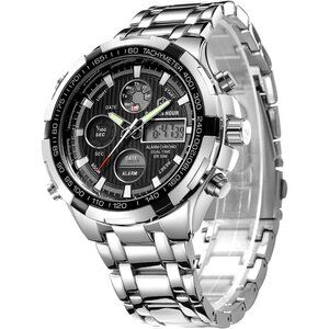 Luxury Stainless Steel Analog Digital Watches for Men Male Outdoor Sport Waterpr