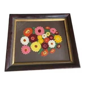 Vintage Handmade MCM 60s/70s Floral Painting with Wooden Frame