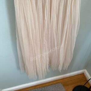 I adore this stunning, brand new with tags designer Needle & Thread pink/cream neutral colored beaded top and tulle skirt maxi dress/gown