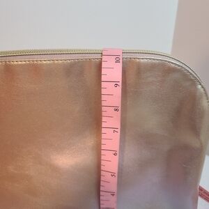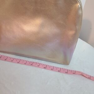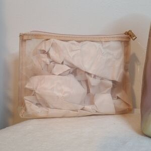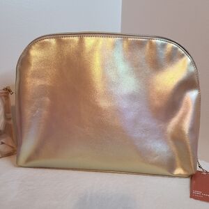 Stylish iridescent cosmetic bag with a pink transparent pouch. Perfect for travel or daily use.
