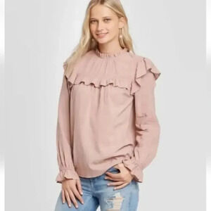 Universal Thread Pink Mauve Women's Ruffle Long Sleeve Blouse