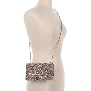 Dazzling clutch with floral crystal design. Features a chic chain strap. Ideal for evening elegance. EUC