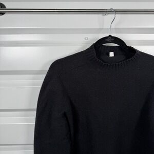 Uniqlo Womens Black 100% Wool Long Sleeve Crewneck Pullover Sweater Size L