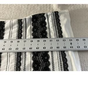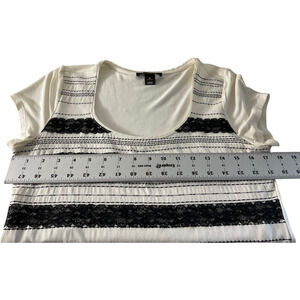 White House Black Market Women's Medium Black White Striped Blouse Lace Circles