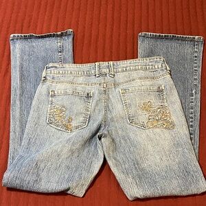 L.e.i. Ashley jeans, ultra lowrise denim, junior size 9 jeans, Y2K jeans, light wash denim, straight leg jeans, casual women’s denim, vintage-inspired jeans, early 2000s fashion, L.e.i. Ashley low-rise