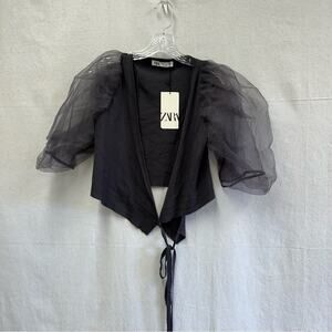 Zara organza statement puff sleeve knit cropped wrap top size large NWT