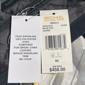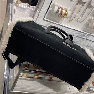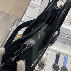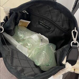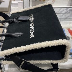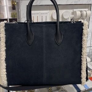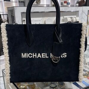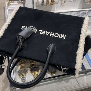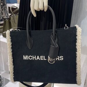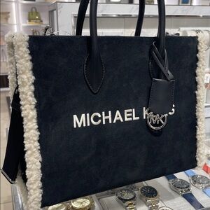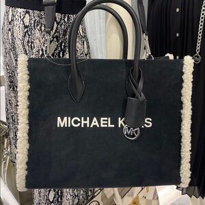 MICHAEL KORS Mirella Medium Suede and Faux Shearling Tote Bag Black NWT