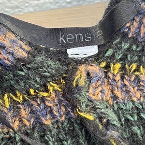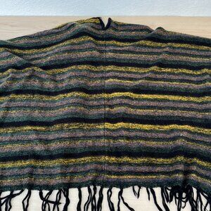 Pre-owned, still in good condition, Kensie Poncho. Black base with yellow, green and a hint of dusty pink, adding to the depth but still gives off an overall muted color.