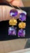 14 karat gold, amethyst and citrine earrings. Add a touch of elegance with these stunning purple and gold drop earrings. Perfect for any occasion.