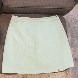 Preowned Royal Robbins Women's light green Skirt. Size 4 Has attached shorts and back zippered pocket. The waist wraps and a zippered closure. The button is loose otherwise in great pre-owned condition camping hiking outdoors Athleisure tennis gold prep preppy gorpcore granola girl
