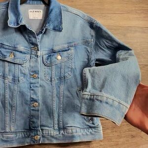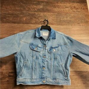 Stylish light blue denim jacket. Features button front and chest pockets. Ideal for casual wear.