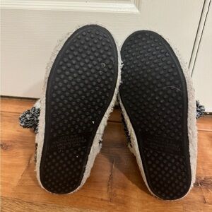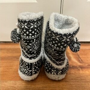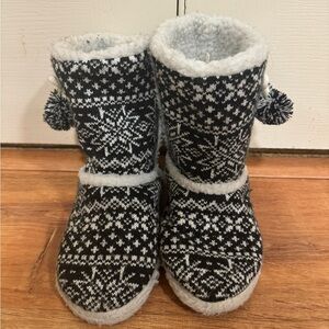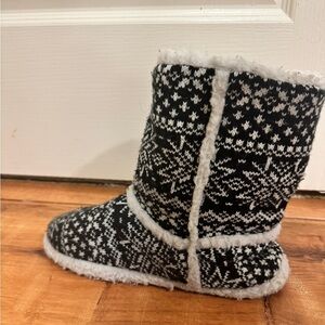 Black and white snowflake pattern slipper booties in a size large 8-9