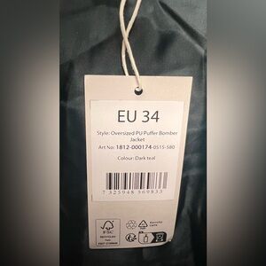 NA-KD- Dark Teal, Oversized PU Puffer Bomber Jacket, Size: 34EU