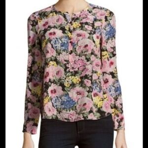Rebecca Taylor 100% Raw Silk Lavinia Rose Print Top