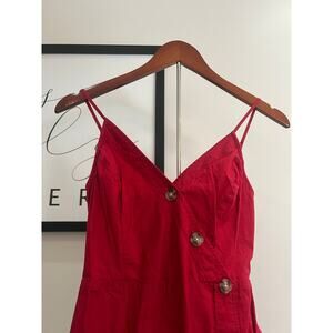 Adorable Express Red A-Line Sun Dress with Wood Button Details. Size XS