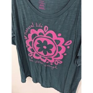 Natural Life T Shirt Women's XXXL Teal Green Graphic Short Sleeve Casual Top