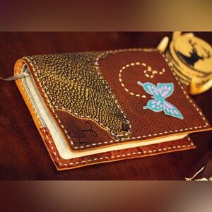 I make custom leather notebook and Bible covers, link in bio for more info. I offer exotic leather like giraffe shown in this beautiful Bible cover!