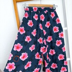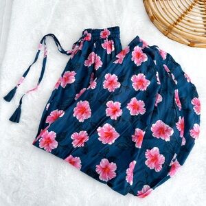 Tiare Hawaii Shorline Pants Wide Leg Tassel Navy Pink Floral