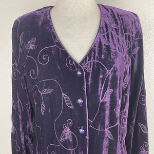 NWOT Coldwater Creek Purple Velour Button Down Jacket Top Size L EUC