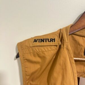 Aventur utility vest in tan. Features multiple pockets and a zip closure.