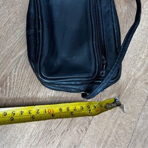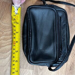 Sleek and stylish black leather crossbody bag. Perfect for everyday use.