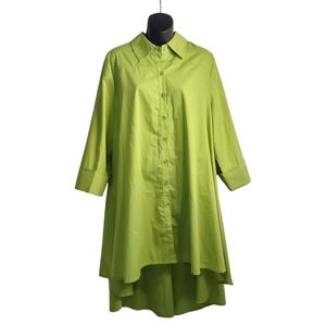 Midnight Velvet Shirt Dress Womens Green Button Up Hi Low Shirt Dress Sz XL NWT