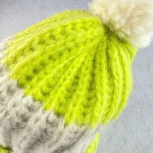 Apparis Oshin Beanie Kiwi Green Stripe Cream Pom Pom Recycled Knit Toboggan NEW!