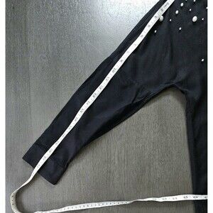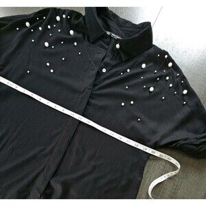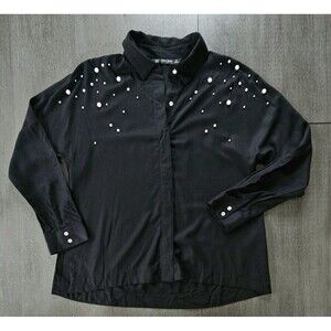 Zara Black Bead Pearl Accent Long Sleeve Button Down Blouse Shirt Medium Party