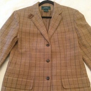 EUC Lauren Ralph Lauren tan lambswool plaid blazer.Sz 12 Purchased/never worn