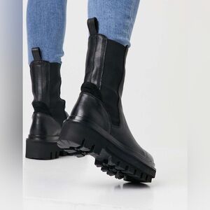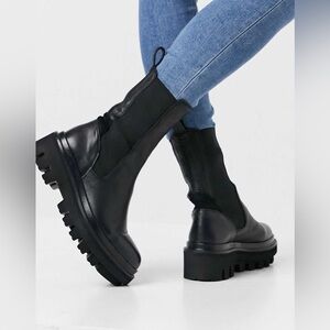 AllSaints Billie tall chunky leather Chelsea boots in black