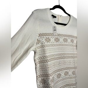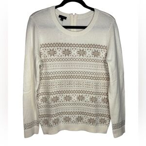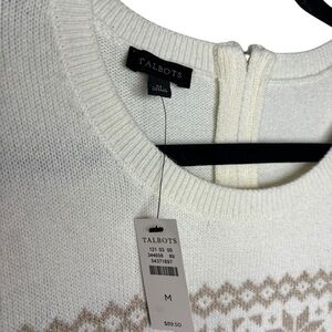 NWT Talbots Fair Isle Winter Print Cream Knit Crewneck Sweater Size Medium
