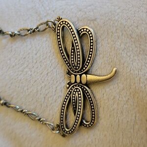This elegant silver dragonfly necklace adds a touch of whimsy to any outfit. Perfect for everyday wear or special occasions.