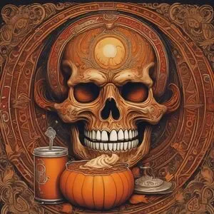 Detailed orange skull art print with ornate patterns. Perfect for adding a bold statement to any space. 8x10