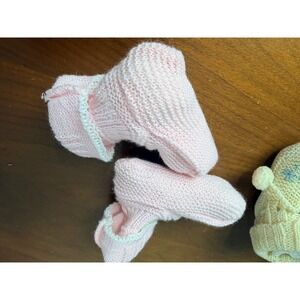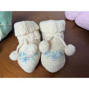 Keywords: baby shoes, newborn booties, infant mittens, handmade knit, baby shower gift, gender neutral, pastel colors, photo props, cozy, soft, adorable, winter warm