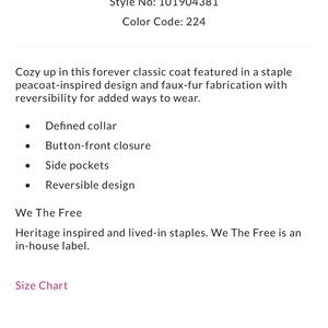 We The Free Cream and Tan Combo Coat NWT Free People reversible coat
