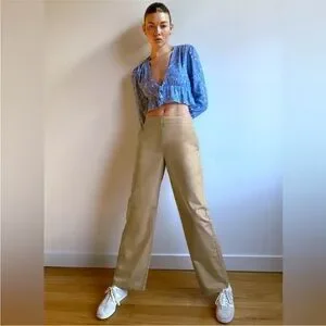 Aritzia Sunday Best Charlie Wide Leg Trousers Taupe Beige Size 8
