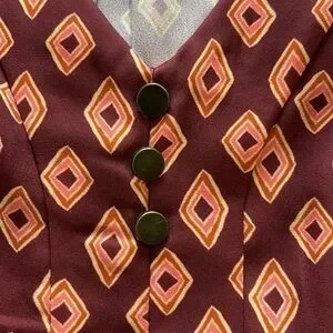 Modcloth Maroon Orange Diamond Shape Sleeveless Blouse Size Large EUC #0489-DS