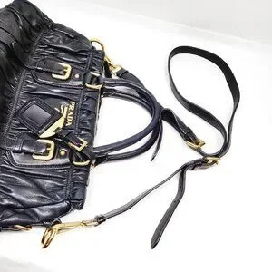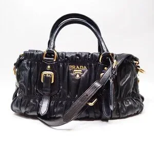 Authentic Prada Hand Bag Nappa Gaufre 2way Black Leather mn720-121725
