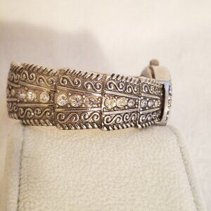 Silver watch cuff w rhinestones w attached battery