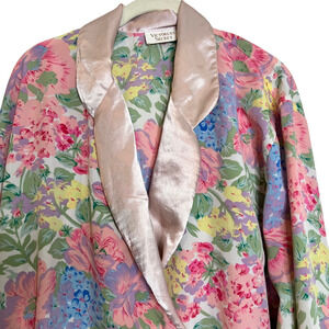 Vintage Victoria's Secret Gold Label Pink Floral Satin Sleep Shirt M Long Sleeve Button Up