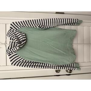 Orvis Women's Color Block Hooded Pullover in seafoam green with striped sleeves