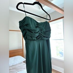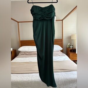 NWT ASTR the Label Hallie Strapless Dress in Satin Forest Green | Size L