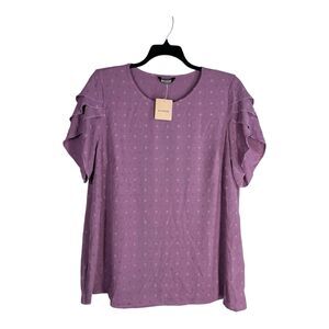 BloomChic Dressy Top Size 18/20 Lilac Polka Dot Petal Sleeve Blouse Flowy Tunic