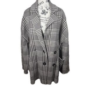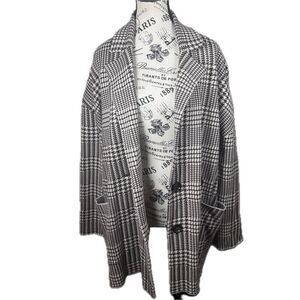 Zara Houndstooth Double Breasted Oversized Knit Sweater Blazer Jacket Size L