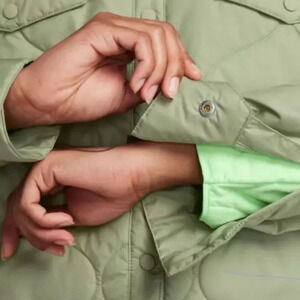 NEW Nike Essential Quilted Green Trench LS Snap Button Coat FB8732-386